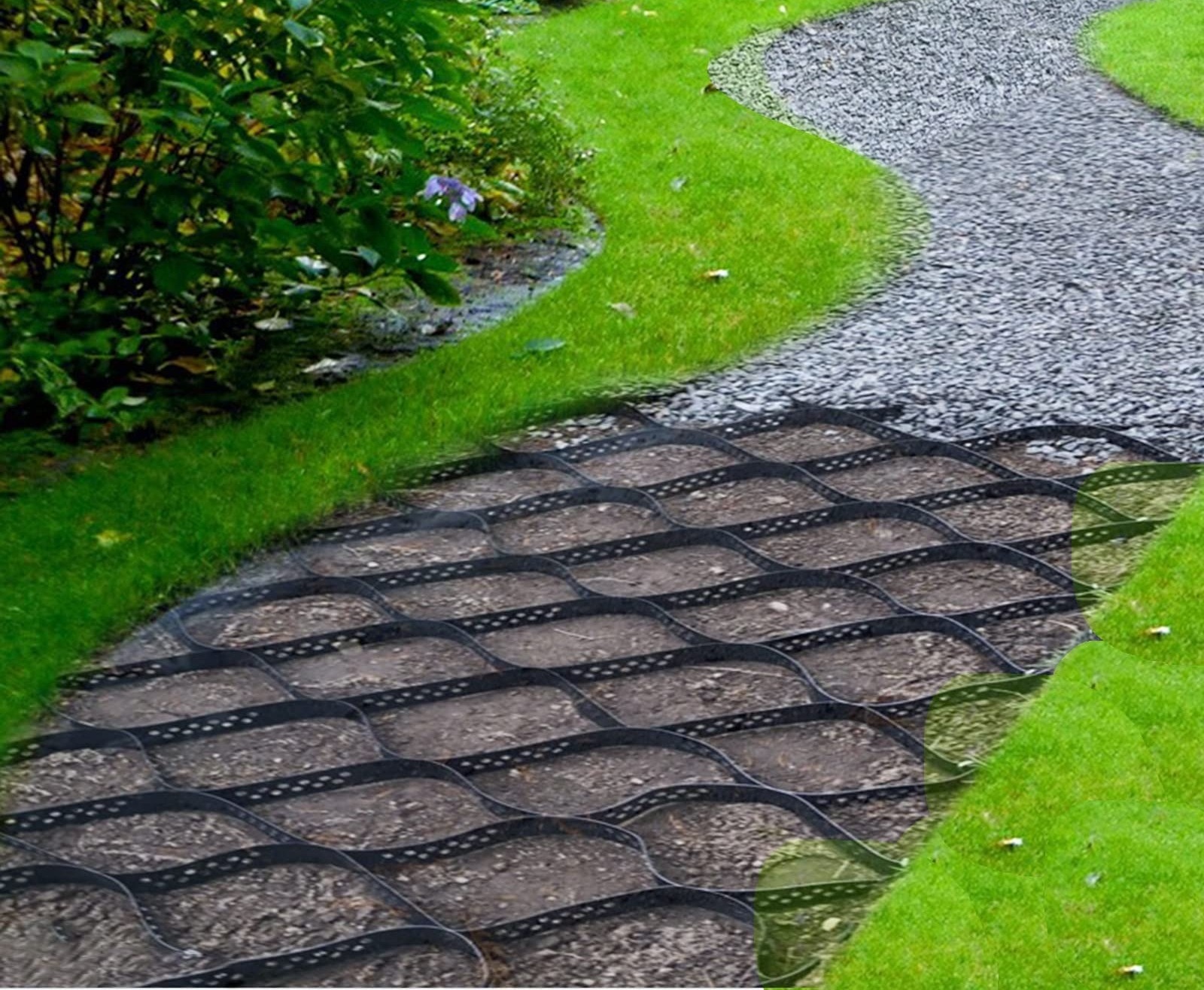 Low-maintenance gravel walkways and driveways.